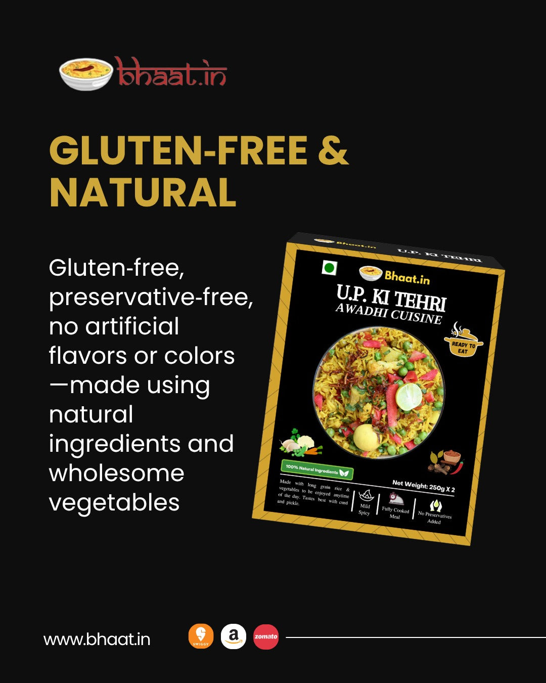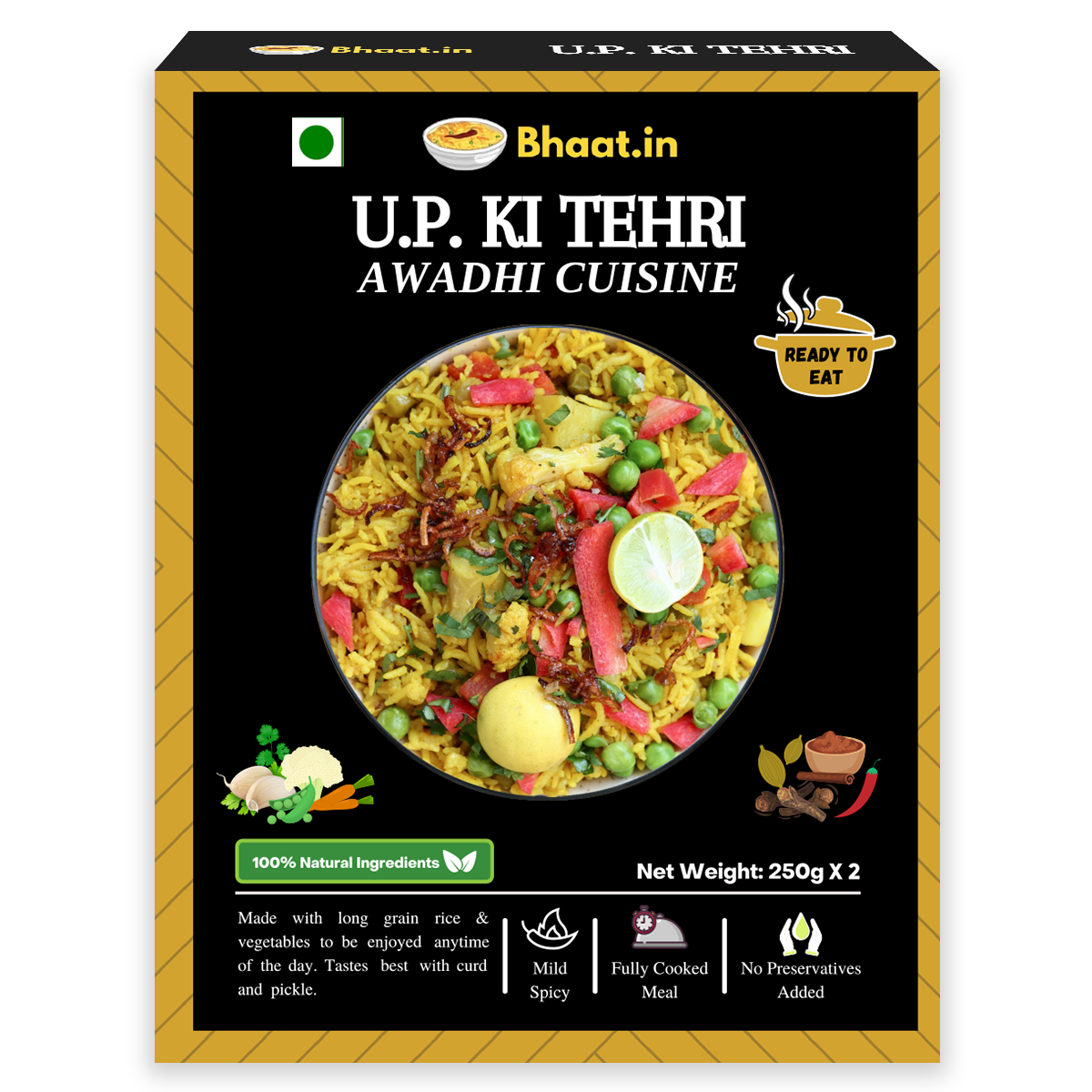 Bhaat.in Tehri Awadhi Pulao |Pack of 2 Ready-to-Eat Instant Meal | Gluten-Free